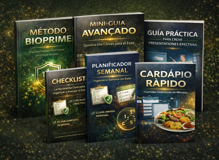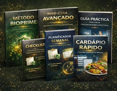 BioPrime es un material exclusivo que te guía de forma clara y práctica a través de la organización de la alimentación y la rutina diaria, utilizando esquemas visuales, orientaciones simples y explicaciones accesibles. Fue diseñado para ayudarte a comprender cómo apoyar el metabolismo y la salud digestiva mediante alimentos estratégicos, y aplicar este conocimiento en la vida real, como nunca antes, sin cápsulas ni promesas milagrosas.